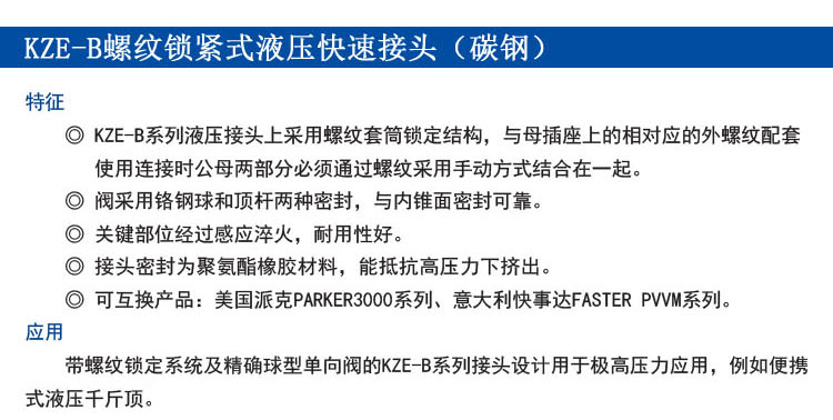 KZE-B螺紋鎖緊式液壓快速接頭(碳鋼)